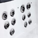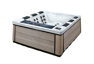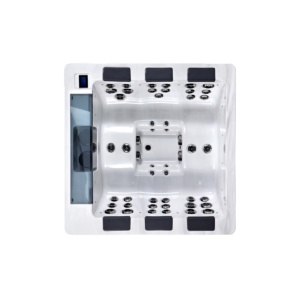 This well designed spa is 78.5” x 78.5” x 34” in width, length and height. The spa has two loungers, which is perfect for a couple. It can comfortably sit 4 people and has capacity to hold up to 6 people at any given time